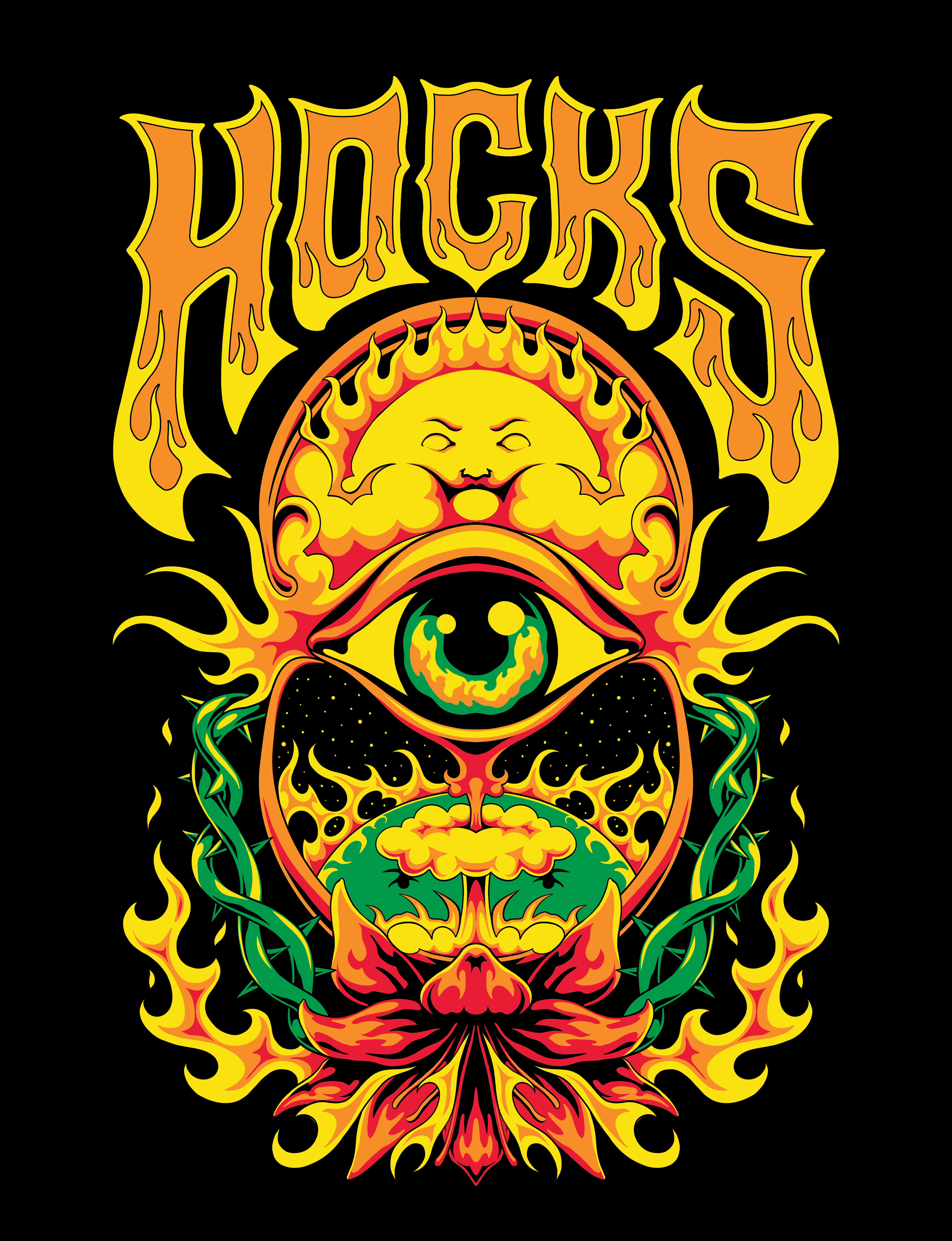 A selection of illustrations and graphic artworks created for Hocks Skate’s Summer 2024 collection.
